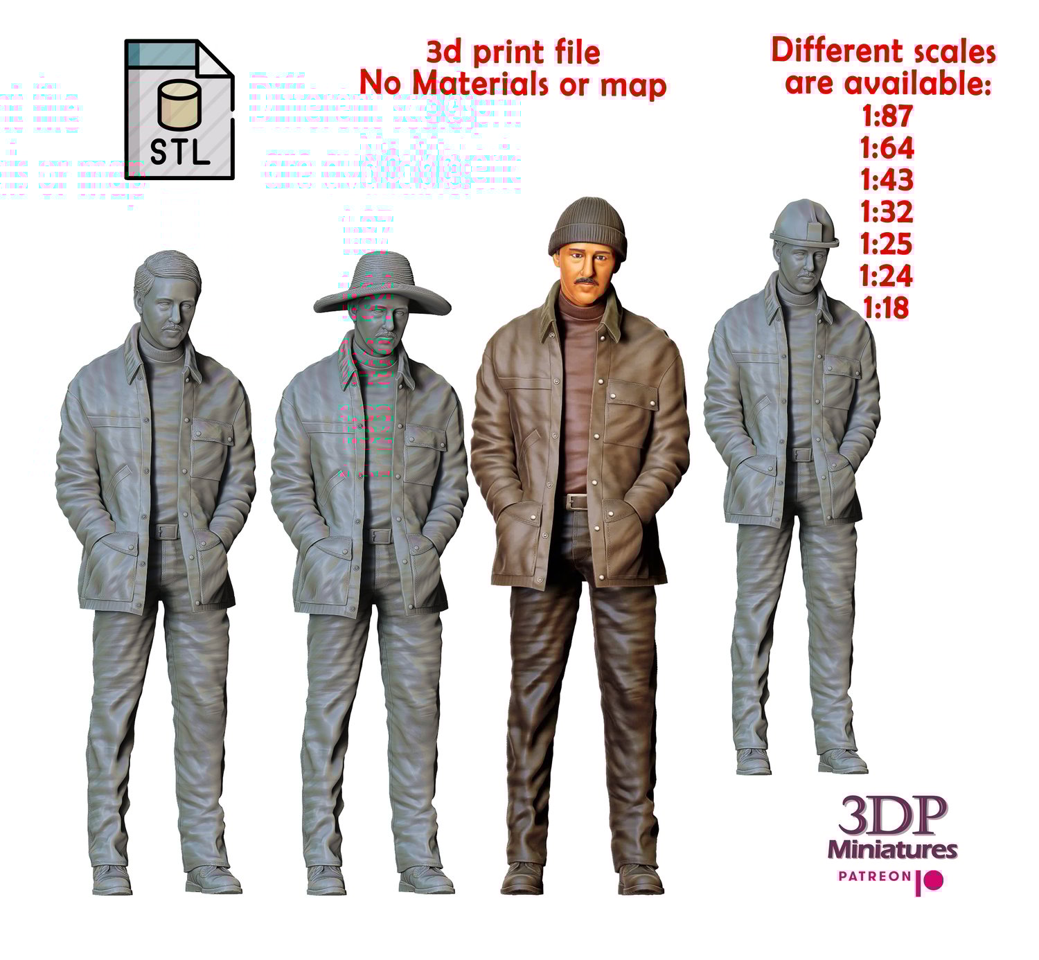 The figure was ready in 7 scales: 1:87, 1:64, 1:43, 1:32, 1:25, 1:24, and 1:18, but it is of sufficient quality up to 1:6.